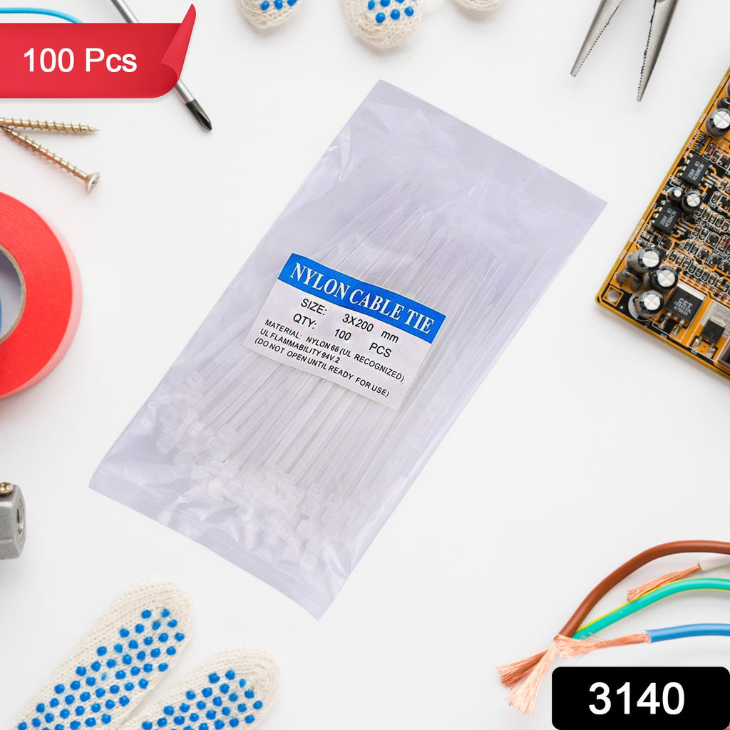 3.2x200 MM Nylon Self Locking Cable Ties, Heavy Duty Strong Zip Wire Tie. Pack of 100